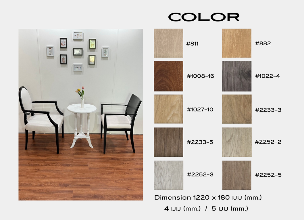 * ปัจจัยราคา: ความเรียบของพื้นเดิม, ความชื้น, ลาย/แพตเทิร์น, งานบันได/บัว/รางจบ